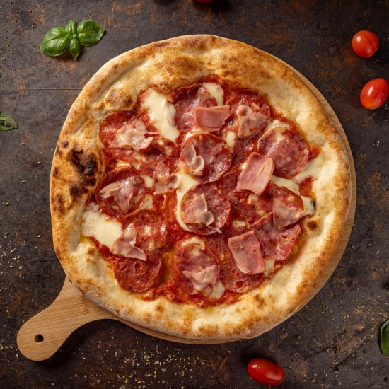 도우, 치즈, 햄의 기본 조합에 돼지고기를 엊은 환상적인 피자