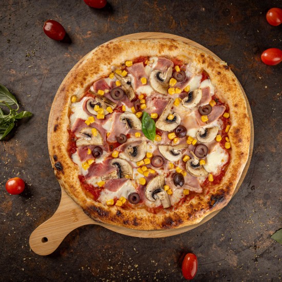 햄, 버섯, 치즈를 듬뿍넣고, 콘으로 마무리한 맛있는 피자