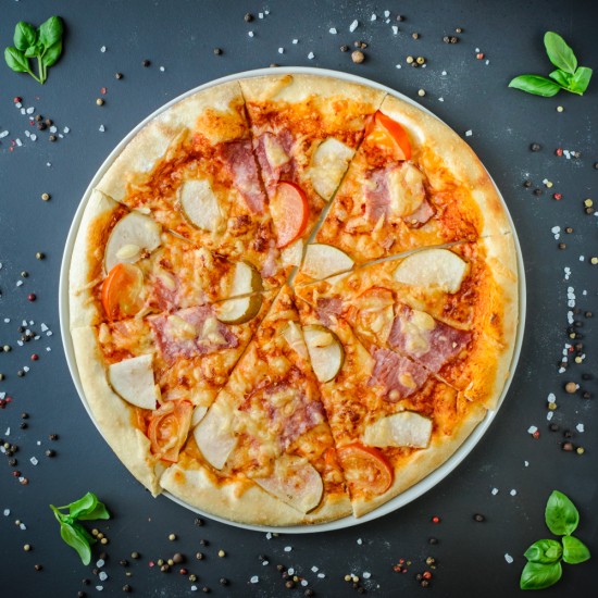 야채, 호박, 햄을 얇게 썰어 얹은 부드러운 다이어트 피자
