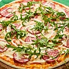 얇은 토르티야에 야채 햄을 얹은 가벼운 피자
